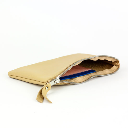 Beige Leather Zip Pouch